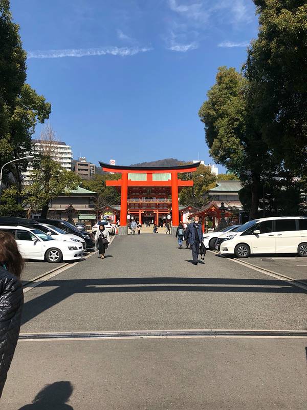 早上起来十点就要退房,在前台寄存了行李后就出门觅食啦~然后就开始随意溜达,我们出门都是随意玩耍,很少要必须去某个地方,其实这样可以收获更多快乐啦,早上第一万次经过东门街~走走走就到了三宫神社,一看还是个景点于是就进去看看~很气派的一个神社神社很不错哦,规模还蛮大的,而且早春三月有几只樱花已经开啦非常美丽~想要在鸟居拍照也很容易等到没人的时候,比很多热门景点要舒适许多也很安静~里面还有一片林子,看当地人都在门口求了签以后在水里洗一下就会出来字的样子,很好玩~