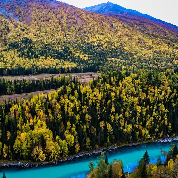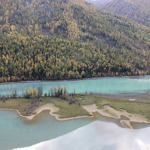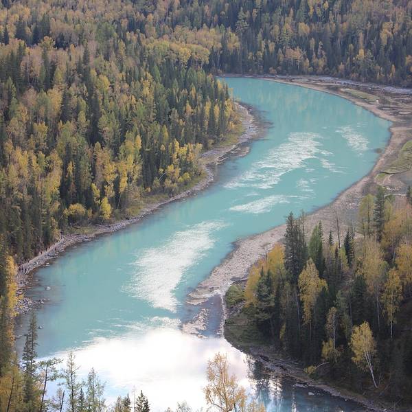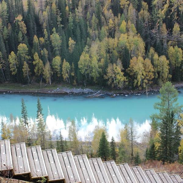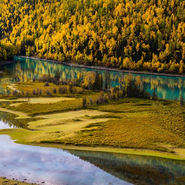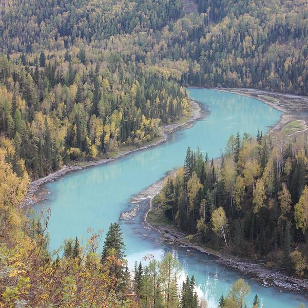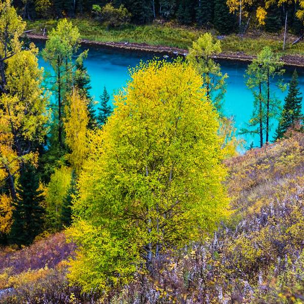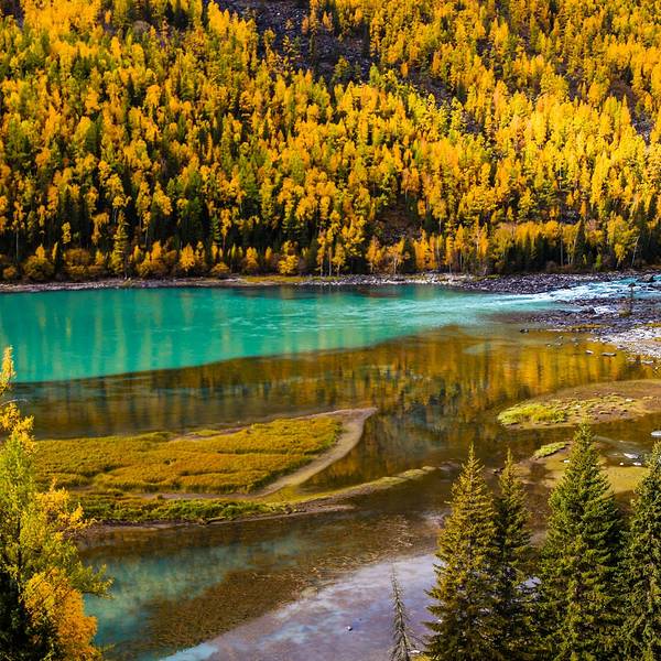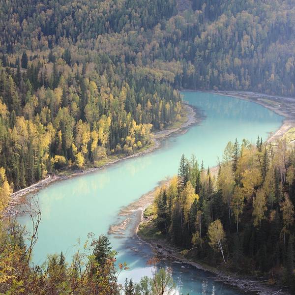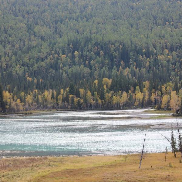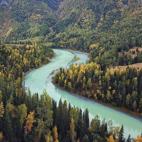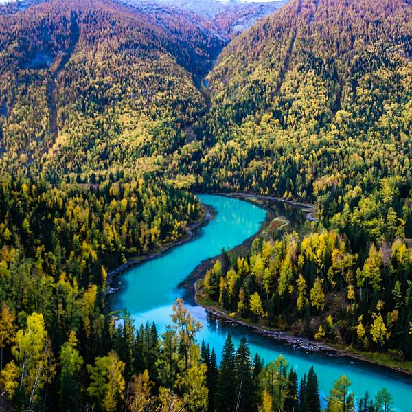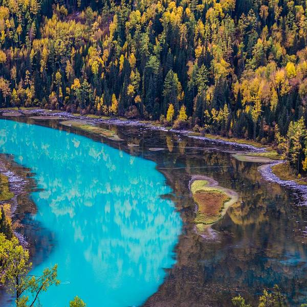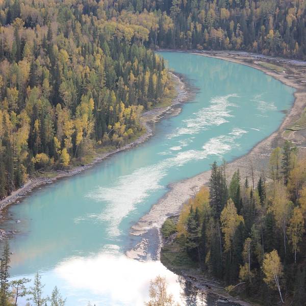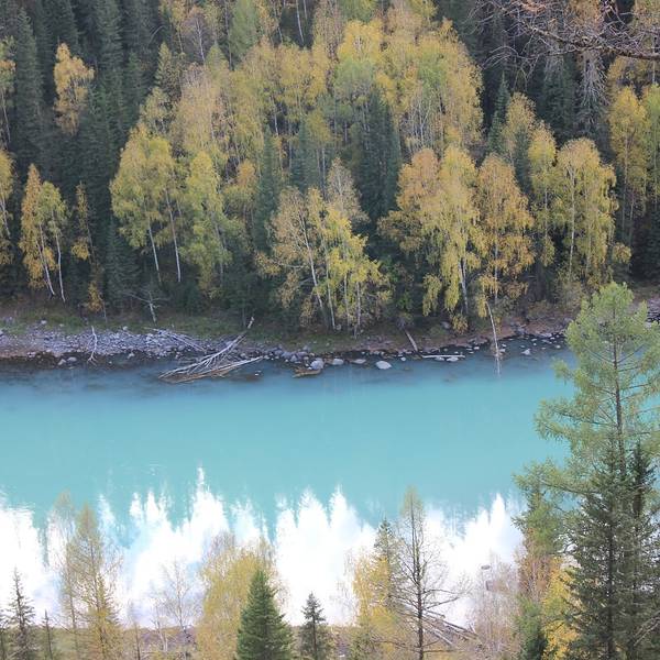 新疆的河水,真的很纯净,大多是雪山融化的雪水,污染少,人口密度小,所以才有如此美景。