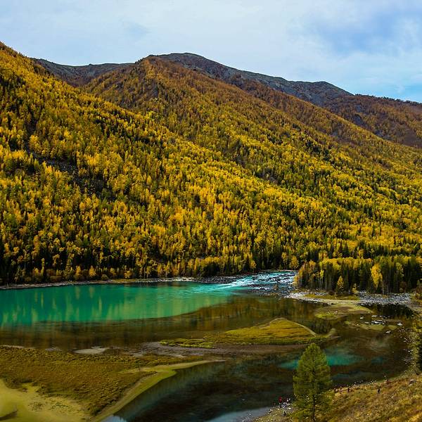 喀纳斯三湾是其中的代表性看点,如诗如画,风光无限。神仙湾----是喀纳斯湖在山涧低缓处形成的一处浅滩【喀纳斯三湾】即沿喀纳斯河依次而现的神仙湾、月亮湾和卧龙湾。喀纳斯三湾是其中的代表性看点,如诗如画,风光无限。湖面碧波万顷,群峰倒影,湖面还会随着季节和天气的变化而时时变换颜色,是有名的“变色湖”...【喀纳斯三湾】即沿喀纳斯河依次而现的神仙湾、月亮湾和卧龙湾。喀纳斯三湾是其中的代表性看点,如诗如画,风光无限。湖面碧波万顷,群峰倒影,湖面还会随着季节和天气的变化而时时变换颜色,是有名的“变色湖”。神仙湾----是喀纳斯湖在山涧低缓处形成的一处浅滩。月亮湾往北大约3公里处有一片河滩,这里的河水将森林和草地切分成一块块似连似断的小岛,人称神仙湾。喀纳斯湖月亮湾位于卧龙湾上游约1公里,是卧龙湾河曲的延伸部分,美丽静谧的月亮湾会随喀纳斯湖水变化而变化,确是嵌在喀纳斯河上的一颗明珠。喀纳斯河床在这里形成几个由反"S"状弯河曲组成的半月牙河湾,被称之为"月亮湾"。月亮湾迂回蜿蜒于河谷间,水面平波如镜,在上下河湾内发育两个酷似脚印的小沙滩,很是奇特,被当地人称为"神仙脚印"。这月亮也像一条长长的蓝色纽带。月亮湾是我最喜欢的地方,喀纳斯景区最喜欢的地方,没有之一,很是秀美。有光的时候一个样,没有阳光的时候又是另一个模样。树的影子白色的,映衬在湖面上,就像画好的一副层次有序的画一样。卧龙湾是指喀纳斯湖中弯弯曲曲的沙洲地带,形状似龙。当地称卧龙湾为“卡赞湖”。 展开