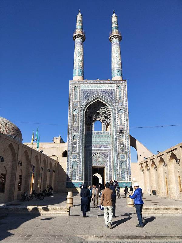 我们参观了据说是伊朗历史最久,规模最大的清真寺——聚礼清真寺(Jame Mosque of Yazd在亚兹德,我们参观了据说是伊朗历史最久,规模最大的清真寺——聚礼清真寺(Jame Mosque of Yazd)。摄于伊朗亚兹德聚礼清真寺摄于伊朗亚兹德聚礼清真寺