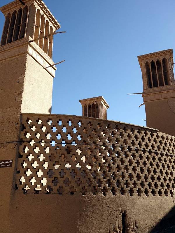 其实他们还真有空调,并且还是完全不耗电节能又环保的大自然空调。整个亚兹得老城就是一个大的空调系统,其中有很多风塔建筑,民居都有地下室。风塔的功能就是通风,然后把招进来的风引入地下室。虽然外面很热,地下室里面因为有天然空调的风,随时都很凉快。