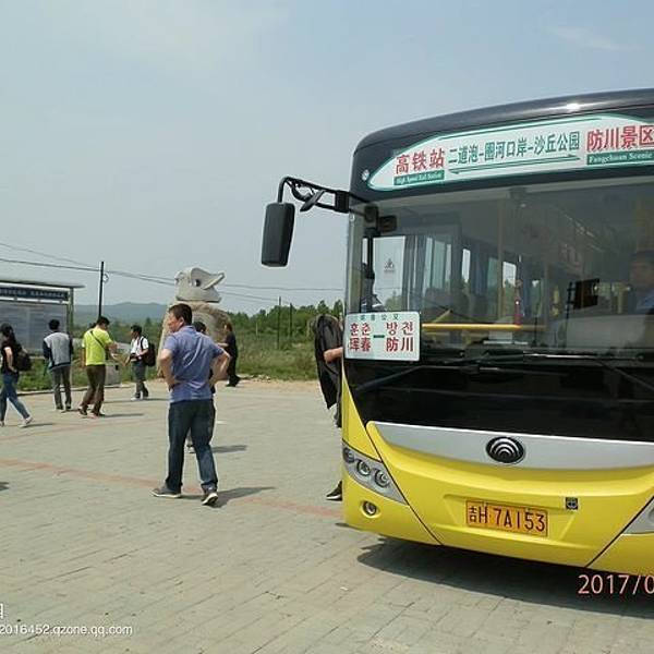 我们当天坐的图们北到珲春的D113列车,还是十几块的车钱,十几分钟的路程就到了。 珲春站出来左侧有黄色的公交车,公交车前面有牌子写着哪条线的,乘坐到体育场的,每人2元。到圈楼下车,这时到现代百货步行也就十分钟,也可以打车(珲春市内打车就5块)。
