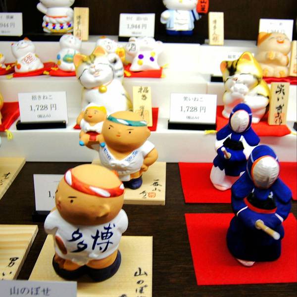 主要卖博多的工艺品和名产品。另外博多特产糕点食品和庆典用品、以及其他富有博多特色的商品也应有尽有。