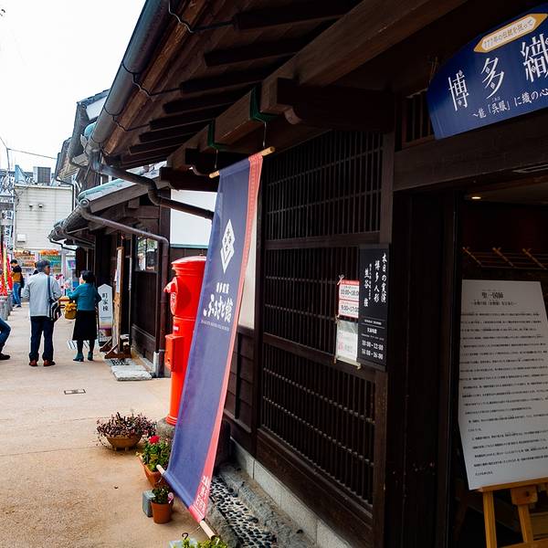 小巷里的邮政卡通人物特别可爱栉田神社就在附近不太大的屋子,造型是传统的博多风格,里面有织布机,有当地人表演博多的织布工艺,游客也可以体验。小巷里的邮政卡通人物特别可爱栉田神社就在附近。