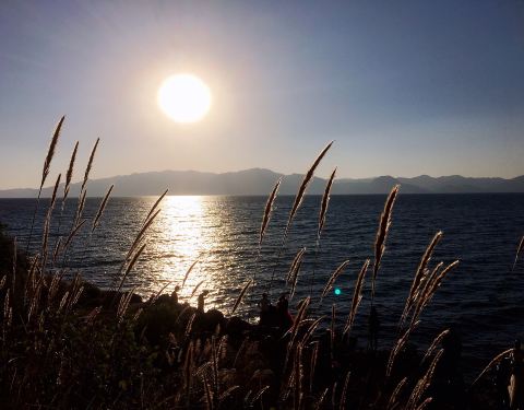 沿着湖岸几十公里环游,在一处停下来。走近湖边,湖水清澈明亮。在风的吹拂下,湖水荡漾击打着船舶和沿岸。湛蓝的天空,朵朵型色各异的云朵;把整个天空呈现出活泼的气质。令人恍惚觉得抬手即可触碰到朵朵白云。...