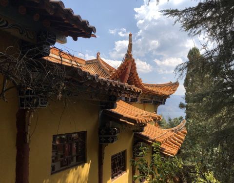 江川孤山风景区风景美如画!空气非常清晰,抚仙湖水清澈见底,湖天一色,湖面如镜,孤山岛上的黄色琉璃瓦房在阳光的照射下金光闪闪,美轮美奂!