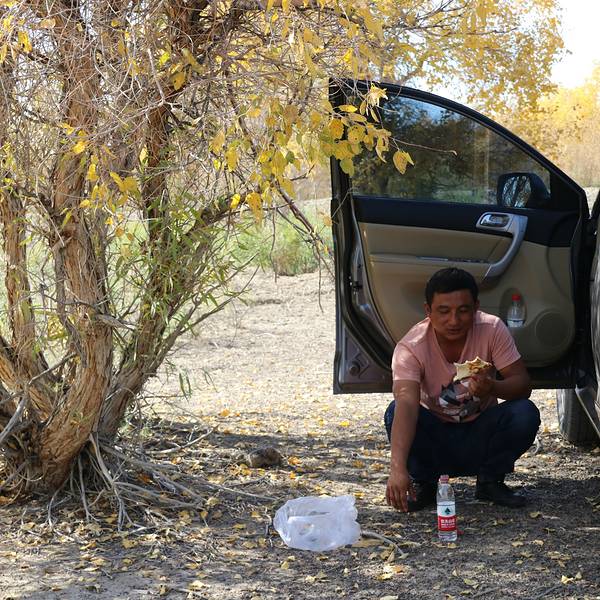 但依旧能感受些他的铮铮铁骨,形姿百态沙漠的守护神组成了金色的海洋,因为“胡杨千年不死,死后千年不倒,倒后千年不腐”,所以有了一种想见一见的情怀,时间有了些些晚,很多叶子飘落了~但依旧能感受些他的铮铮铁骨,形姿百态~累坏的司机小哥哥~