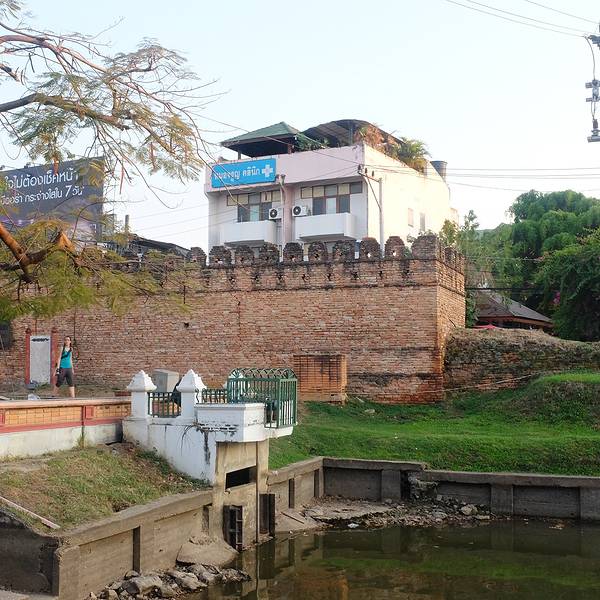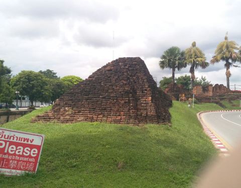 原有的城墙古迹已剩下不多了。乾帕门位置在清迈古城的正北面,也就是古城墙的北门乾帕门位置在清迈古城的正北面,也就是古城墙的北门。清迈古城还保留着它的护城河,河中装了喷水装置。原有的城墙古迹已剩下不多了。
