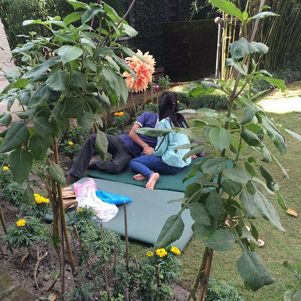 梦想花园并没有多美,但适合在阳光下休息,园中央有很多垫子供大家躺着。