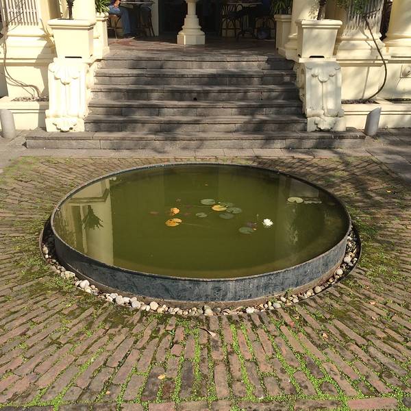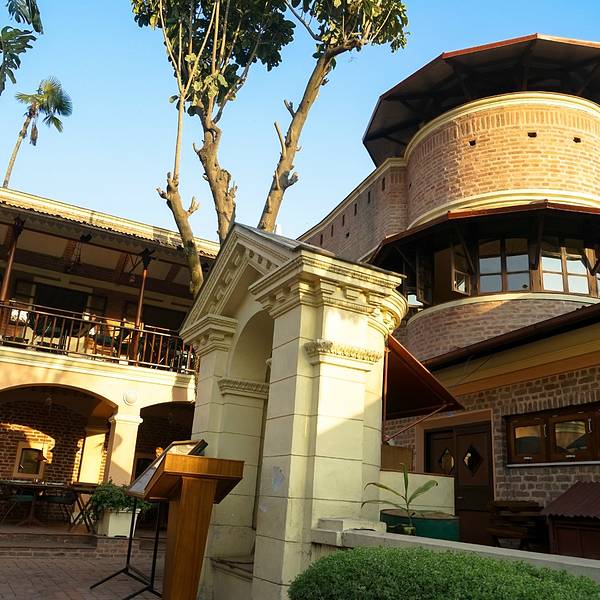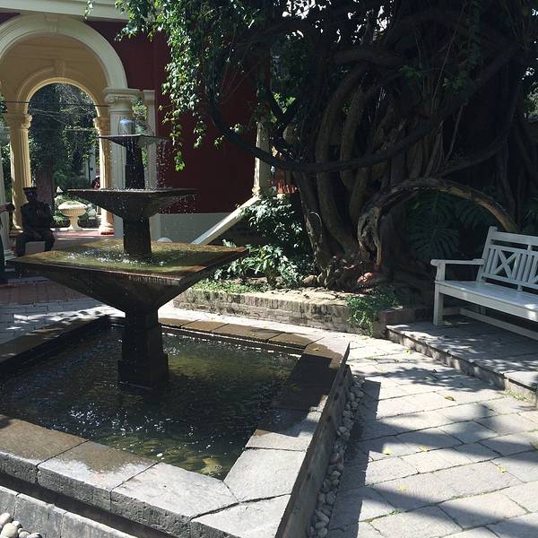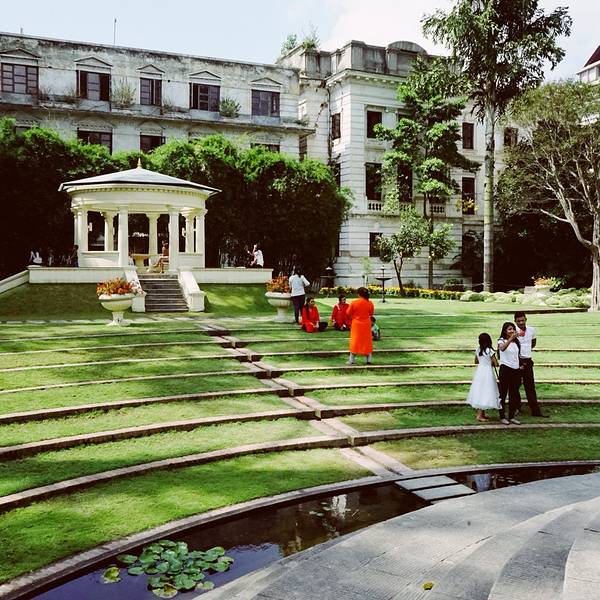 花园内的建筑具有鲜明的新古典风格,配以精心修剪的绿植,再加上一片宽敞的水池,使得这里相对于嘈杂的泰米尔区来讲,仿佛一片与世隔绝的净土。在庭院的一角还有一间咖啡屋,对于城市的喧闹已经感到疲惫的游客,可以来这里寻找一份属于自己的内心的平静和安逸。