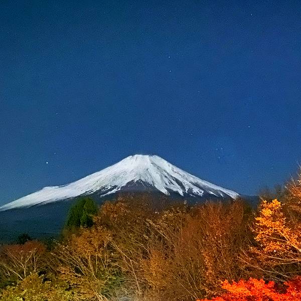 当晚入住日式温泉旅馆名叫 秀山 庄,可以泡温泉,感受日式榻榻米,而且有丰厚的晚餐。下图是晚上11点借着酒店的灯光用手机隔着玻璃手持拍摄的,当时肉眼可以看到 富士山 的大概轮廓,但是根本看不见,iPhone11 pro自动识别夜景曝光5秒拍摄出了这张照片。山中湖富士山下图是晚上11点半走到湖边架好三脚架,用相机曝光30秒拍摄的夜间 富士山 ,当天为阴历15,理论上月明星稀,但是空中繁星点点,相信并不多见。下图是 富士山 顶的情况,和普通雪山并没有什么区别。 展开