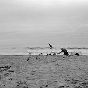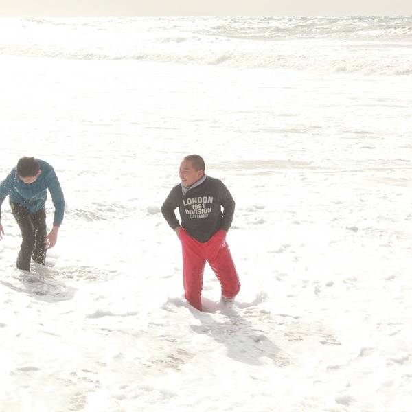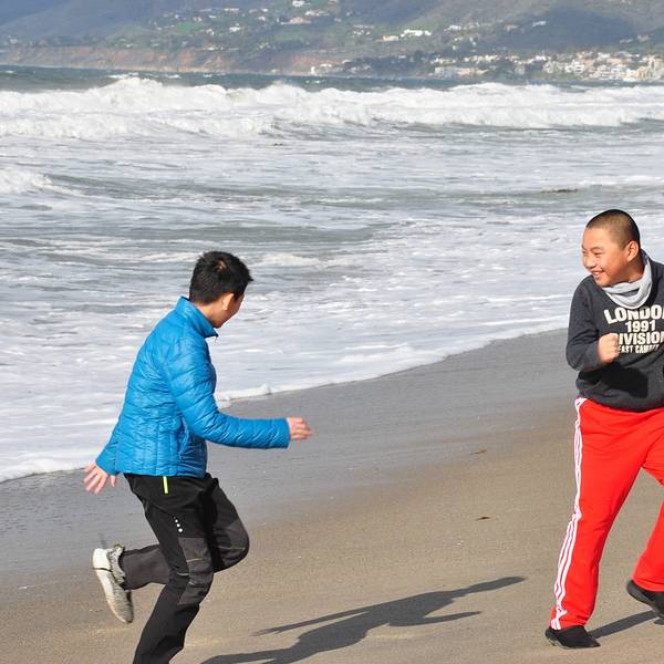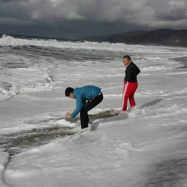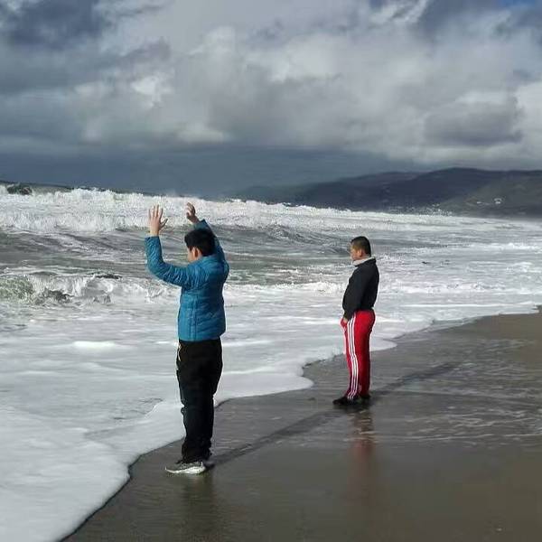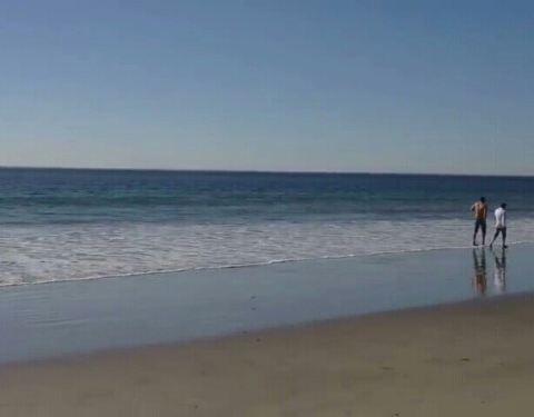 美西海岸大部分都是这种细沙,被海水浸润后坚硬如水泥,踩在上面不会下陷。没有手机还了得行至马里布小镇,天空愈发晴朗,蓝天白云一扫众人几日来的胸中阴霾,大家兴致勃勃跑到海滩上狂拍。