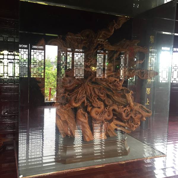 金骆驼 之后又游览了孙氏四方楼、戚氏进士第、三庙、李信昌过载行等,整个景区总体来说真的很不错先去游客中心买了票,出了游客中心便看到照壁墙后那座充满森森古意的主景点——口岸雕花楼,跨过高高的门槛(据说古代越是富贵的人家门槛越高),进入到的是门厅,也是现在验票的地方,过了门厅就算是正式进园了...先去游客中心买了票,出了游客中心便看到照壁墙后那座充满森森古意的主景点——口岸雕花楼,跨过高高的门槛(据说古代越是富贵的人家门槛越高),进入到的是门厅,也是现在验票的地方,过了门厅就算是正式进园了,沿着道路往前走依次走过了第二进(不记得叫啥了暂且叫第二进吧)、牡丹园、家祖屋,牡丹园内有一棵枣树造型奇特,之前还没见过这么奇形怪状的枣树,后来看了下介绍牌才知道叫龙爪枣。穿过家祖屋来到了北园,最先引入眼帘的便是那最能说明雕花楼上一代主人发家致富的船舫——沐雨舫,据说雕花楼的主人当时是当地首富,是靠船运输木材发家的,所以才建造这么一个沐雨舫以作纪念,也是一个纳凉赏月的好去处。沿着长廊走过去,欣赏了硕果累累的香柚和香橼,来到了观澜阁脚下,据说以前站在这上面就能够看到不远处的长江,也是蛮厉害的,现在长江离这里好远了。登上高阁,里面的九龙根雕不免令人称奇,是由根雕大师以千年银杏根作材料一下一下雕刻而成,着实厉害了。下了观澜阁便是南园,经过南园,来到的就是精华之所在——雕花楼,据说至今已经有两三百年的历史了,能保存的这么好也是不简单呐,二楼赫然写着江左第一楼,朋友说这是因为长江本是东西走向,走到高港的时候转了个弯变成南北走向了,高港又在长江以东(顺着长江就是左边),所以就叫江左第一楼。走进楼内,来到的天井算是最最精华的部分了,各种各样的雕花蕴含着丰富的故事,五福临门前,福如东海等等都体现了当时工匠们的心血。出了雕花楼往东走,来到了东园,硕大的一棵香樟树进入了我的视线,它的枝干怕是遮住了整个东园的湖面,树干要四人才能环抱,在长江以北这么大的香樟很少见的,能在这里见到,也是开了眼界了。再往旁边看去,一棵400年的黄杨静静地躺在那里,据说是雕花楼的镇园之宝,也难怪,这么历史悠久的树木实属罕见。走出雕花楼这座私家园林,沿着道路往北走,一座鼓楼矗立于此,不远处还有一个大水车,过了一座桥,看到了岳飞的铜像,据说岳飞曾在此抗击过金兵。之后又游览了孙氏四方楼、戚氏进士第、三庙、李信昌过载行等,整个景区总体来说真的很不错。 展开
