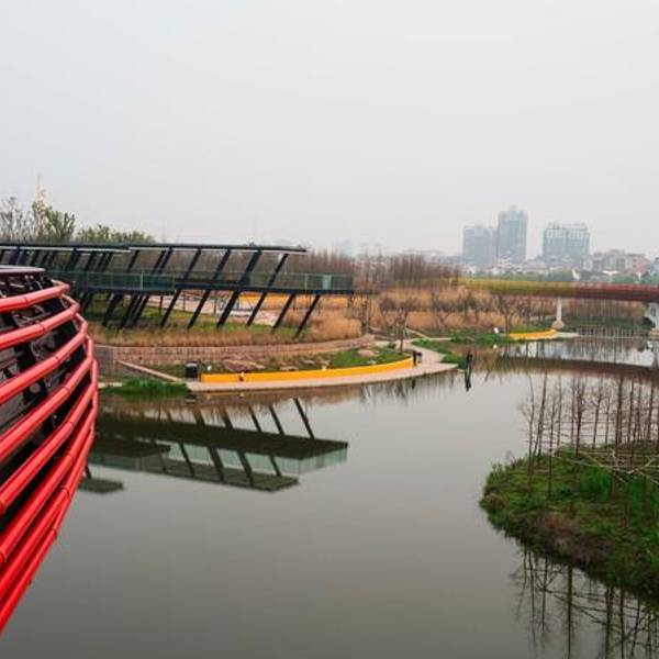 在新加坡6日举办的2015世界建筑节上,金华燕尾洲公园获得建筑节上最重要的大奖之一——“最佳景观奖”。这是中国设计师在本届建筑节上唯一获得的大奖项目。这一奖项是从世界各地申报的700多个项目中脱颖而出的。作为世界上最著名的建筑奖项之一,世界建筑节奖WAF被誉为建筑界的“奥斯卡奖”。今年,建筑节吸引了全世界60多个国家、2000多名建筑设计师前来参会。燕尾洲公园位于金华江、义乌江和武义江交汇处,因为像一只燕子尾巴揳入三江汇流核心地带,得名燕尾洲,是金华市区闹中取静的一块宝地。清晨或黄昏,水草摇曳,在阳光中不时腾起一群水鸟,荡起涟漪的水面——在这片天然的生态聚落区域,这样的美丽画面经常出现。