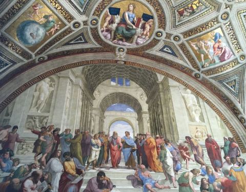 其中最出名的该是签署室,构图从容不迫,利用台阶把欧几里德,柏拉图,托勒密,布拉曼特等放在图中,...这里汇集了拉菲尔的几幅精心大作,春风得意的是深得深得教皇喜爱的天才画家。其中最出名的该是签署室,构图从容不迫,利用台阶把欧几里德,柏拉图,托勒密,布拉曼特等放在图中,而且图中一角还有拉菲尔自己的画像。这里汇集了拉菲尔的几幅精心大作,春风得意的是深得深得教皇喜爱的天才画家。其中最出名的该是签署室,构图从容不迫,利用台阶把欧几里德,柏拉图,托勒密,布拉曼特等放在图中,而且图中一角还有拉菲尔自己的画像。 展开