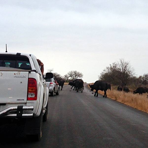 大家来到克鲁格都希望集齐big five,即狮子、花豹、大象、犀牛和非洲野牛。运气好的也许能在短时间内看到,运气差的在公园里转好几天也未必能够看齐。据说追逐动物的最佳时间是日出和日落时分,正好是动物活跃的时间。