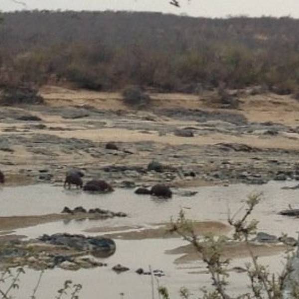 克鲁格公园不同的营地必须从不同的大门进入,今晚我们入住Berg-en-Dal,所以选择走Malelane,还没进公园,在大门外的一片水域,停着好多车,探头一看,一只河马正在 水里 躺着,露出萌萌的两只耳朵和半个大脑袋,旁边还有两只鳄鱼伏在 水里 。初见动物,难掩激动之情,虽顶着烈日也要看个够。在门口填写入住信息后就可以进园了。注意园区和营地的关门时间是18:30,一定要控制好safari的节奏,千万不要被锁在外面。克鲁格国家公园 的地貌完全不同于 东非 广袤无垠的大草原,这里灌木丛生,还有些稀树草原,自有另一番风味,动物与人始终保持着捉迷藏的关系,当你在寻寻觅觅时,可能花豹正伏在树上俯视着你,当你不经意时,可能有不明真相的小鹿一个箭步从你车前纵身越过。不知道我们的克鲁格之旅会邂逅什么,毕竟一切都需要缘分!
