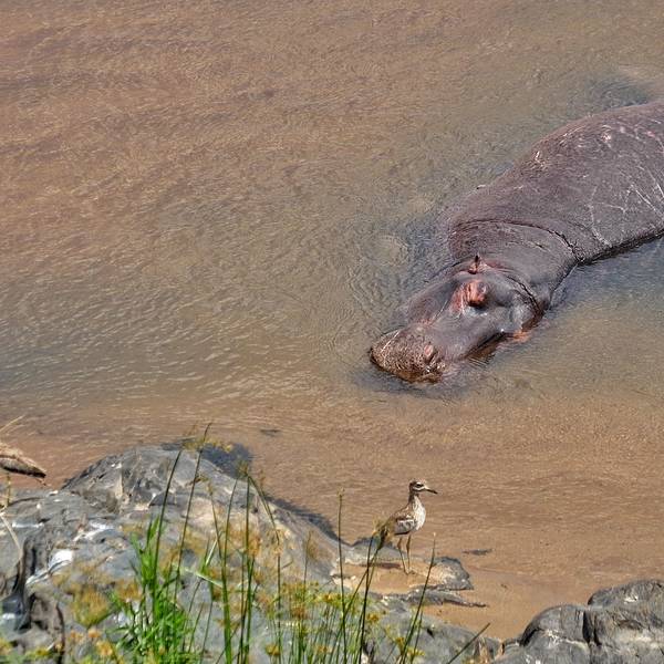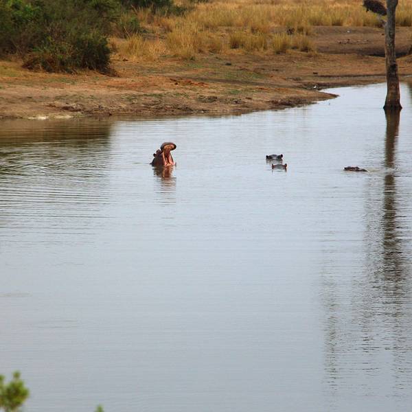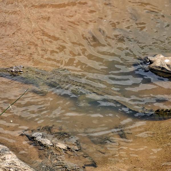 不知到底是河马比较蠢萌还是我们。突然,一只鳄鱼露出凹凸不平的脊背,悄无声息地游到了我们面前,大家屏气凝神,期待着一场大战发生,但只是惊起了几只水鸟,鳄鱼又悄无声息地游走了,只留下水面上浅浅的痕迹。