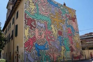 凯斯哈林壁画(Murale di Keith Haring)主题是世界的和平,壁画画在圣安东尼修道院180平方米的墙上。看起来像很多个人。 展开