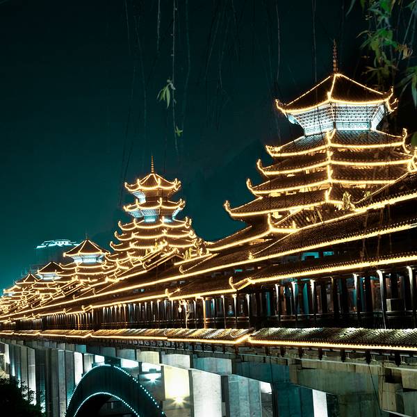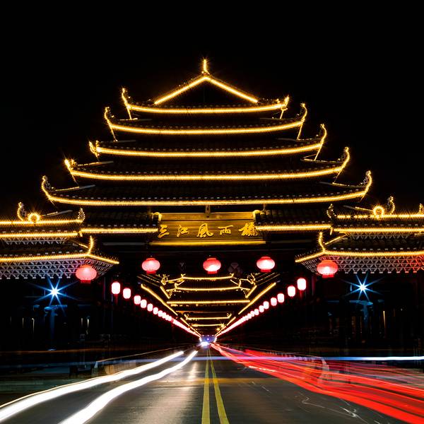 ...的美丽,水中倒影着桥体,如一双动人的眼睛,来到江边,更加邻近欣赏他的美,让人突然有了惊艳的感觉风雨桥,横贯在江上,霓虹灯带让夜晚的风雨桥越加的美丽,水中倒影着桥体,如一双动人的眼睛,来到江边,更加邻近欣赏他的美,让人突然有了惊艳的感觉。风雨桥是侗族独有的桥,流行于湖南、湖北、贵州、广西等地...风雨桥,横贯在江上,霓虹灯带让夜晚的风雨桥越加的美丽,水中倒影着桥体,如一双动人的眼睛,来到江边,更加邻近欣赏他的美,让人突然有了惊艳的感觉。风雨桥是侗族独有的桥,流行于湖南、湖北、贵州、广西等地,由桥、塔、亭组成,全用木料筑成,桥面铺板,两旁设栏杆、长凳,桥顶盖瓦,形成长廊式走道,因为行人过往能躲避风雨,故名风雨桥,尤其是三江县林溪河上的程阳桥是风雨桥的代表,据有关资料记载,程阳风雨桥与中国的石拱赵州桥、铁索泸定桥及罗马的钢梁诺娃上的沃桥齐名,为世界四座历史名桥之一,这在世界建筑史上都是一个奇迹。观看风雨桥比较好的位置在旁边的侗乡国宾馆,居住其中,依栏远瞭,清风送爽。风雨桥的晨景是一种宁静,细雨蒙蒙从天空飘落,雨滴打落在水中泛起点点涟漪,打破了水中风雨桥的倒影,天青色等来了烟雨。 展开