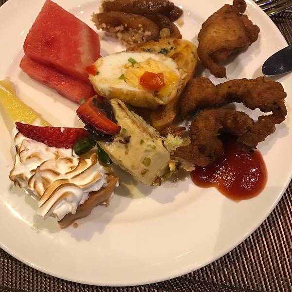 波光粼粼,水天一色,。这次的行程真的不叫做旅游🙅🏻♂️,叫做度假。阴天,云比较多,也挺美的因为有三个小时时差,所以早上起的还挺早,五点半就起床了,准备看日出🌅。因为阴天,没看到日出,就拍拍照片吧!七点开始吃早餐,我们基本上都是最早的。他分析可能中国比这边早,欧美比这边晚,所以老外晚上...因为有三个小时时差,所以早上起的还挺早,五点半就起床了,准备看日出🌅。因为阴天,没看到日出,就拍拍照片吧!七点开始吃早餐,我们基本上都是最早的。他分析可能中国比这边早,欧美比这边晚,所以老外晚上睡得比较晚。特别喜欢这个鲜虾炸云吞,比大叔餐厅的好吃,可惜以后早餐就没有了。😒现做的鸡蛋饼,厨师👨🏻🍳特别热情,和我问好,萨瓦迪卡,我说我是中国人,马上说,你好,一个还是两个?你好吗?你好漂亮!😍鸡蛋饼也很好吃,里边放了切碎的西红柿🍅。早上进餐厅,会有人问,coffee or tea ?橙汁🍊每天都是吃饭,去viu bar,躺在甲板看海。这次的行程真的不叫做旅游🙅🏻♂️,叫做度假。每天都是躺着居多,甲板躺,酒吧躺。波光粼粼,水天一色,水光潋滟晴方好每天不一样的阳光,不一样的海风,看见的海也是不同的。Viu Bar 中间没有地板,能看见小鲨鱼。🦈躺在床上就可以看见大海,好幸福。😄阴天,云比较多,也挺美的。不知名的树上开的不知名的花儿。海边都有的鸡蛋花。Fini 什么,蛮好喝的,像沙冰,点了好几次,每个酒吧做的味道还不是很一样。其实我拍的是月亮🌙,不知道怎么弄的像太阳☀。日落还是ocean 的午餐和晚餐 展开