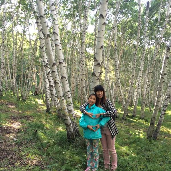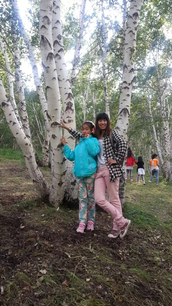 孩子们开心的穿梭于林中,做着各种鬼脸,摆着各种姿势,天真可爱极了吉普车停下,大家全部涌入白桦林中,忙着拍照,好不热闹,瞬间打破了宁静的树林。。。