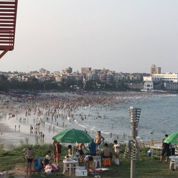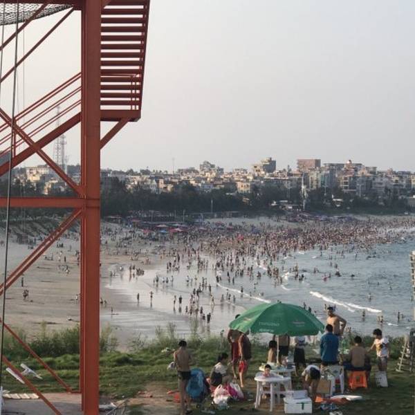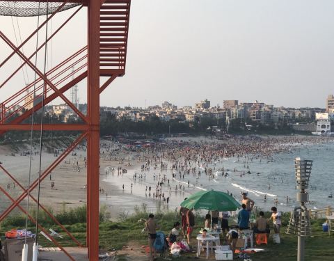夏天海边有很多可以玩的娱乐设备,还有提供自助烧烤。沙滩很干净。