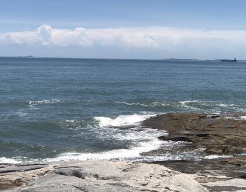 仰望对面无比开心,海岸线环绕四周。一个字赞围头村有一个景区叫金沙湾度假村,哪里的水质清澈见底,离金门直径距离5.4海里。仰望对面无比开心,海岸线环绕四周。一个字赞!