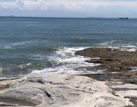 仰望对面无比开心,海岸线环绕四周。一个字赞