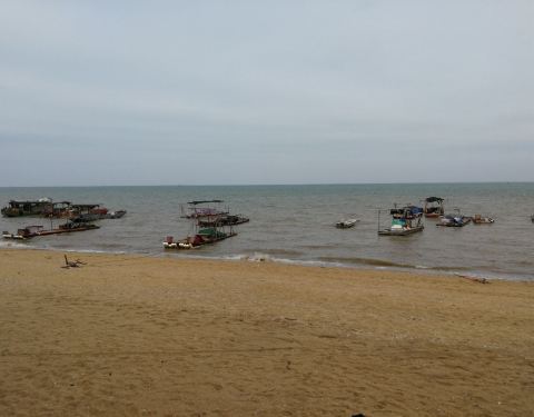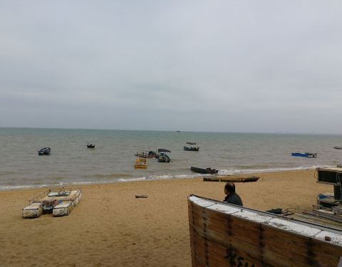 吃饭来到这里,可能是因为淡季,人不是很多,海水偏黄,和想象中的差很多吃饭来到这里,可能是因为淡季,人不是很多,海水偏黄,和想象中的差很多。海面上一直有小渔船,捕来的海鲜,直接供给附近的海鲜饭店。
