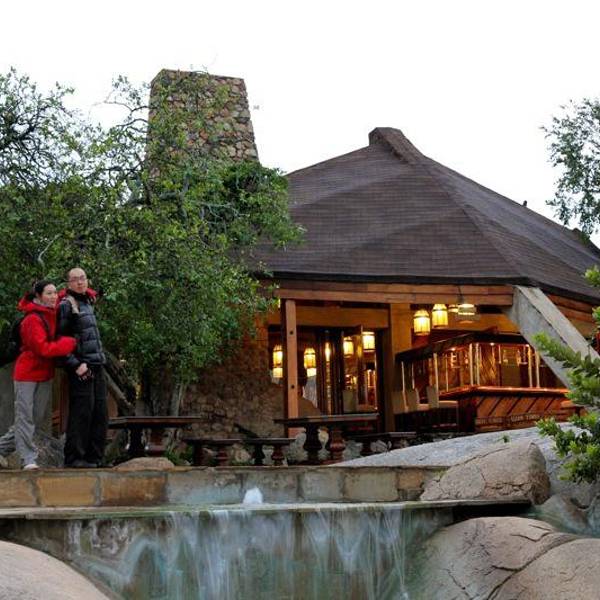 带着激动我们回到了 SeroneraWildlifeLodge,趁着天还没黑透有时间好好好欣赏这个酒店。 这个酒店距塞伦勒那河有3公里多,依着巨大的岩山建造的木制酒店。 巧妙的利用了岩石,客厅呈丁字形团团环绕着庭院。走廊连着岩山,穿过岩间,是沿岩石而建的酒吧和休息厅。 酒吧和休息厅用玻璃建造,可以更好的贴近大自然。。