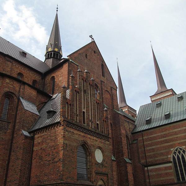 这个久负盛名的大教堂位于城市的市中心,是罗斯基勒地区的主要旅游胜地,每年来此参观的游人多达170,000人。1000多年以来,这里就一直存在着教堂,因此来教堂旅游堪称是丹麦人自古就沿袭下来的一大传统。如今人们所看到的教堂是由大主教阿波萨隆——哥本哈根的奠基人——于十二世纪七十年代开始创建的,自那以后,许多建筑风格迥异的门廊和小礼拜堂相继得以增建。如今,教堂展现了800年以来丹麦建筑艺术的最好范例。自15世纪早期开始,教堂就变成了皇室家族所厚爱的埋葬地,变革运动以来,所有的国王都在这里执掌政权,不仅如此,自中世纪开始,教堂还被用作皇家陵寝,国王哈罗德·Bluetooth, Sweyn Estridsen 河玛格利特一世王后都被安葬于此,这里共埋葬了39位国王和王后,其中许多人都是藏于华丽而精美的石棺中的。1985年,在教堂的西北角建造了一个新的皇家墓地。这里埋葬着当今的丹麦女王玛格利特二世的双亲,即国王FrederikIX和王后Ingrid。