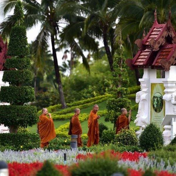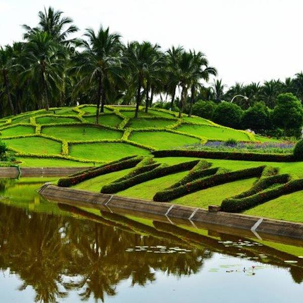 园子很大,展出了近40座主题花园,花卉包括了中国杜鹃花、不丹国花蓝罂粟和荷兰郁金香等各式各样的花朵,绝对是女生的最爱。园子很大,光靠走的话会体力不支,需要乘缆车游览。一进门右手边是缆车售票处,单人20B还是30B我忘记了,总之很便宜。缆车的设计很人性化,沿途设有很多站点,和公车站一样,清晰标明每个站点的到达时间。而且买一次票不限次数的上下,逛起来相当节省体力,也不会错过景点。30个国家参展,园内有各国参加博览会时建造的本国特色园艺建筑,其中最金碧辉煌的当属泰国本土的泰式楼阁,金碧辉煌的泰式王宫,想必作为东道主,参加博览会肯定更加用心。