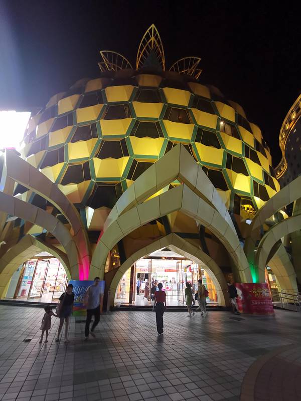为什么叫大菠萝,看一下相片就知道了,真的是一个大菠萝呀。这里离大东海有点距离,从大东海广场那个雕像走路过去不远,大概10分钟就走到了,这里不是只有购物,还有很多家饭店,价格就比较正常了,环境也不错,...为什么叫大菠萝,看一下相片就知道了,真的是一个大菠萝呀。这里离大东海有点距离,从大东海广场那个雕像走路过去不远,大概10分钟就走到了,这里不是只有购物,还有很多家饭店,价格就比较正常了,环境也不错,其中推荐那家万岁寿司,经常有活动,味道也不错,还是很值得来吃的。