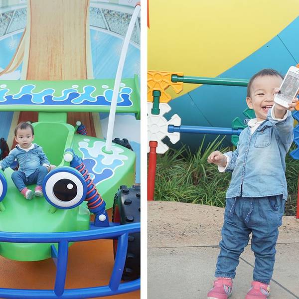 反斗奇兵,国内翻译成玩具总动员,这是一个由玩具组成的乐园。这里的主角是玩具牛仔警长胡迪。反斗奇兵大本营的游乐项目基本都还不适合一岁半的女儿玩,所以基本就是来逛逛。这个区域就是各种各样玩具放大了之后...