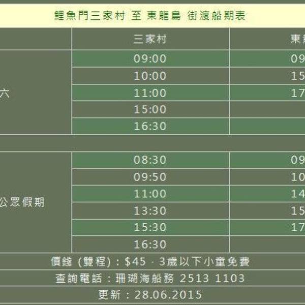 现在船期比较疏落,大概是游客少了吧。请注意好开船时间,还有回...东龙岛是清水湾半岛附近的岛屿,现时只有一艘街渡,于星期六、日及公众假期,由西湾河海晏街开出。若由观塘码头乘船前往,行船时间约为三十分钟。