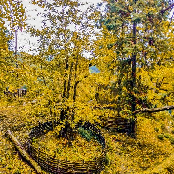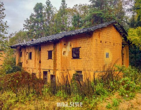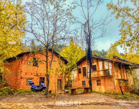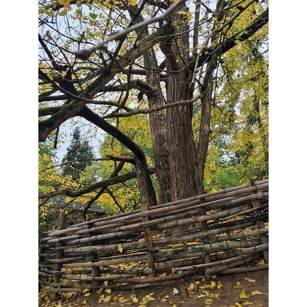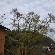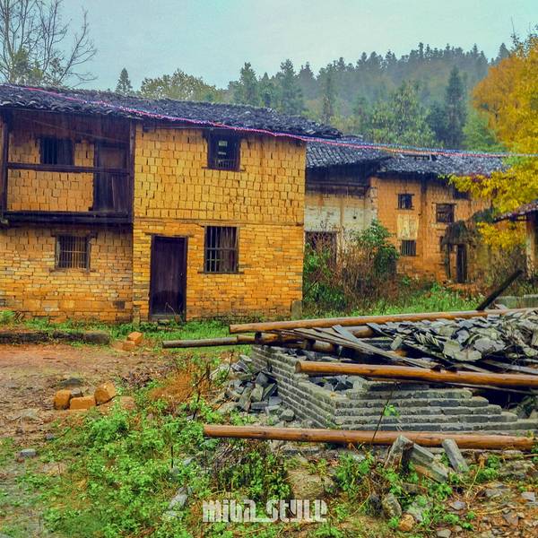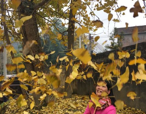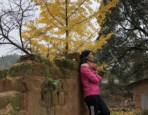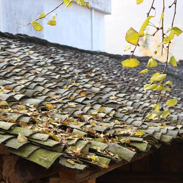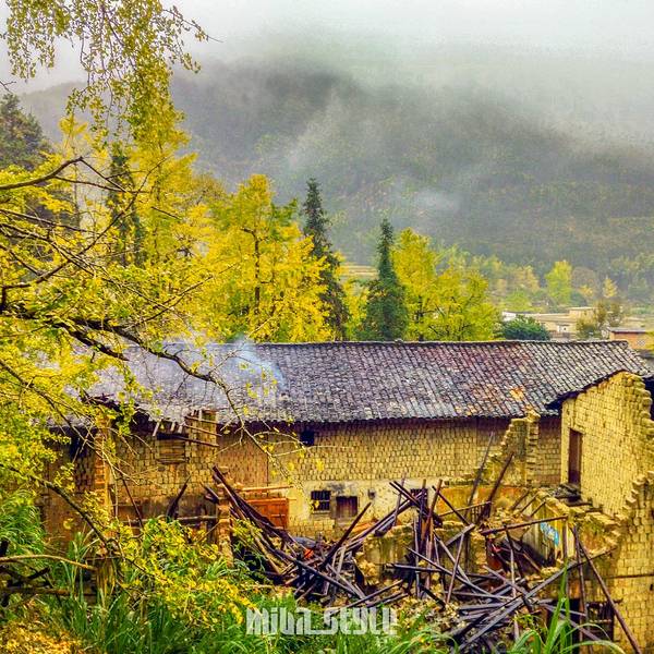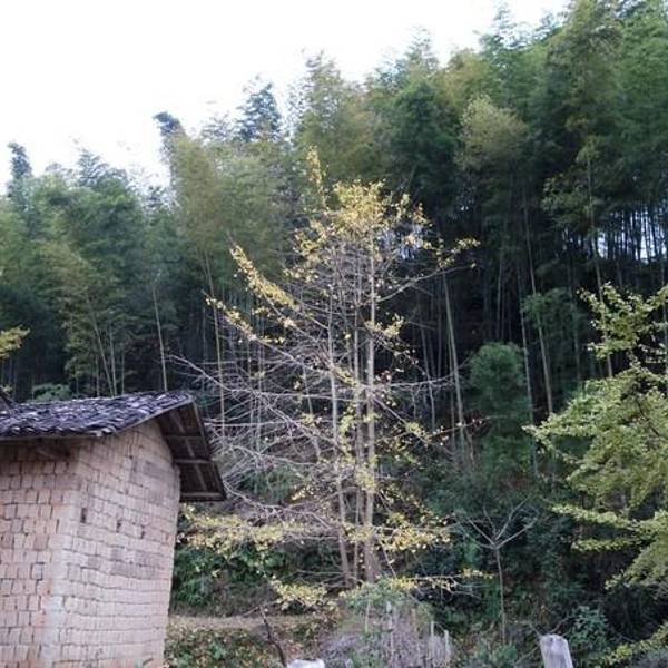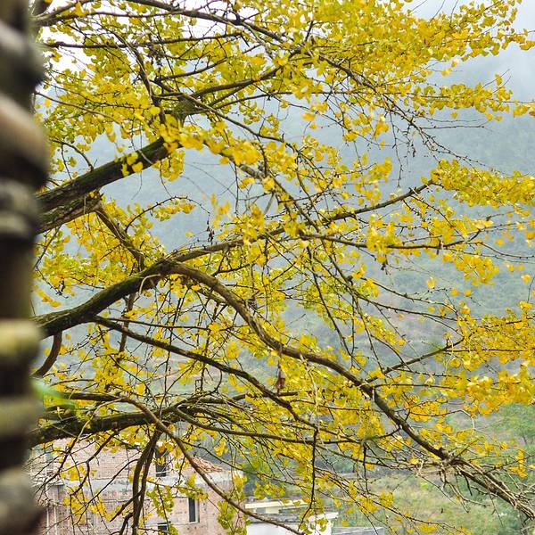 突然吹起了大风,树叶飘落一地,可以享受着诗情画意里的风景,只是拍不出落叶的效果。树木较为集中的一块地司机把我们送到冯屋村的停车,往前走一点就是银杏林。破落的古屋在银杏衬托下,更显味道。这里的树没有坳背村的古老
