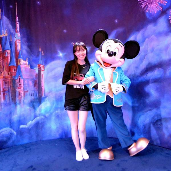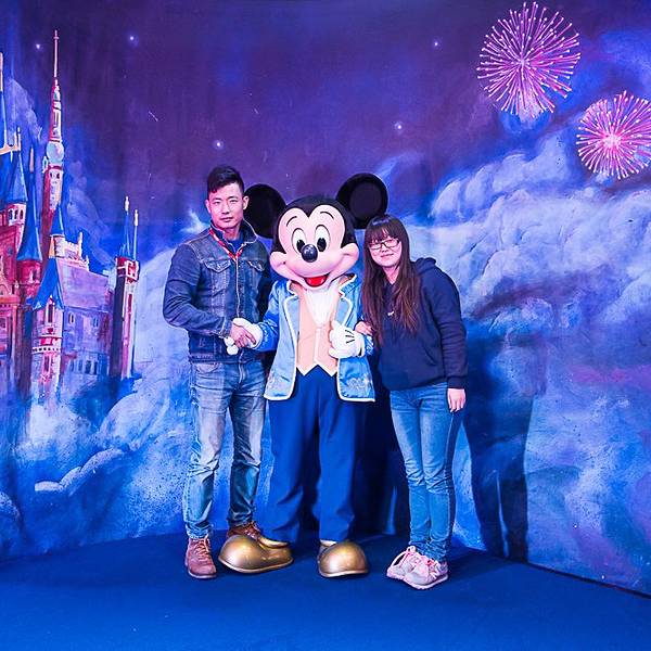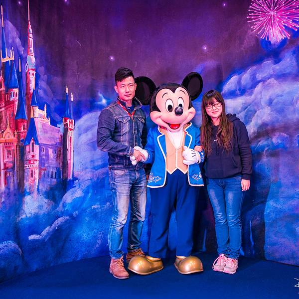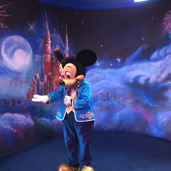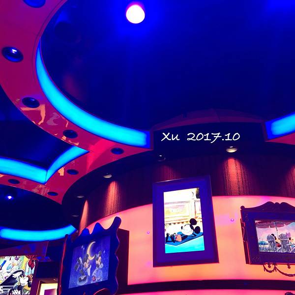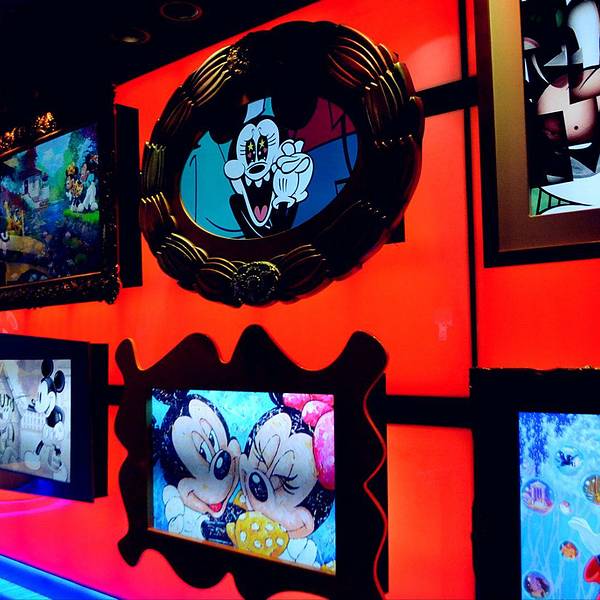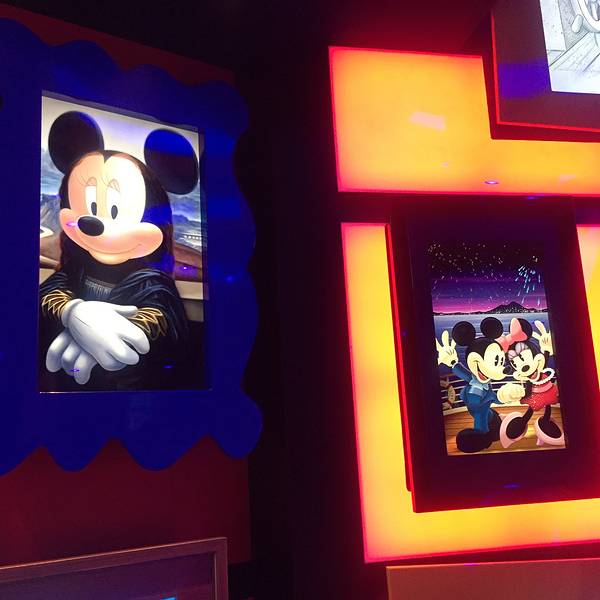 可以拍很多很多照片,工作人员会热情的帮我们拍,可惜里面光线有点暗,拍出来的效果不是特别好这个几乎没怎么排队,进去以后,排队的通道两边是大大小小很多屏幕,每一个屏幕上都在播放米奇的视频,从他最初的形象和画面开始轮播,走到最里面是穿着卡通衣服的真人版米奇,然后就可以合影啦