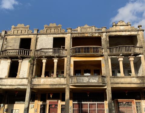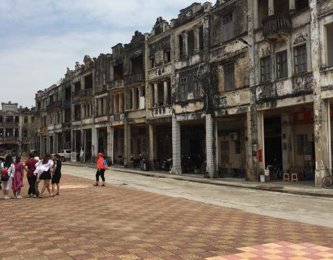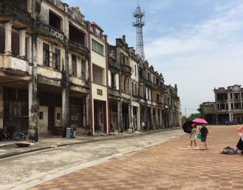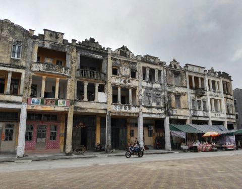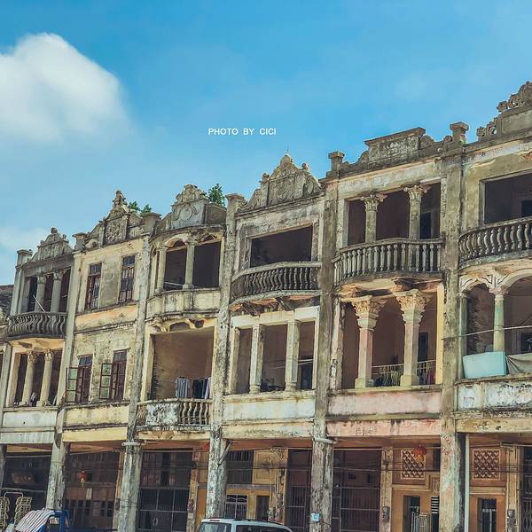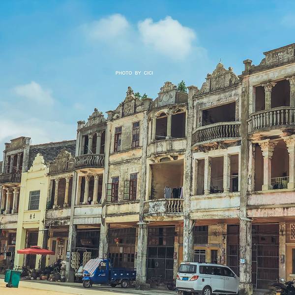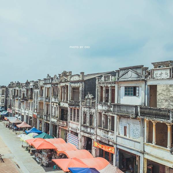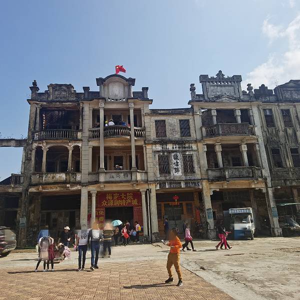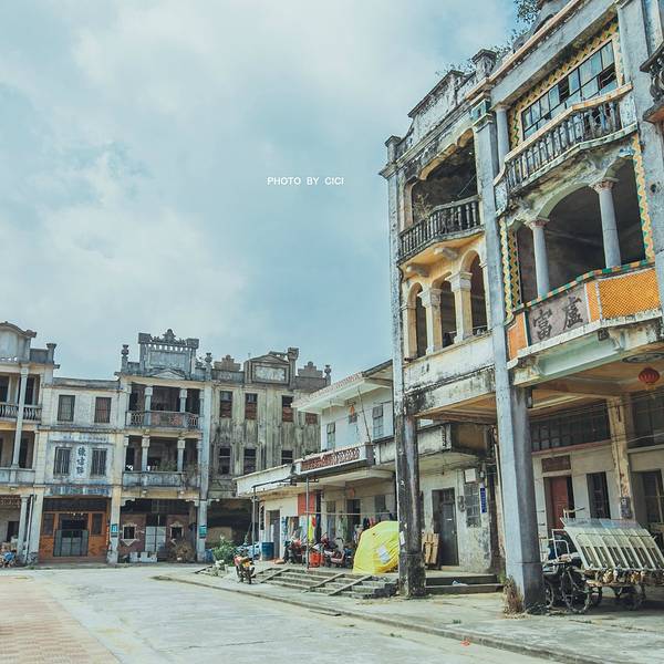 去之前,受开平碉楼留下来的印象,以为这大概是某个梅姓华侨建造的私家花园,就像立园一样。后面的大同河梅家大院,位于广东台山端芬镇。去之前,受开平碉楼留下来的印象,以为这大概是某个梅姓华侨建造的私家花园,就像立园一样。直到走进院子的那一刻,才发现完全超乎自己的想象,这不就是个大集市吗?梅家大院原来...梅家大院,位于广东台山端芬镇。去之前,受开平碉楼留下来的印象,以为这大概是某个梅姓华侨建造的私家花园,就像立园一样。直到走进院子的那一刻,才发现完全超乎自己的想象,这不就是个大集市吗?梅家大院原来是个集市旅行回来,慢慢梳理,才渐渐搞明白梅家大院的来龙去脉。原来,梅家大院的前身就是个集市。时间要退回到1931年,那时的中国还处在民国时期。台山因靠近南海,是著名的侨乡,很多人下南洋赚到了钱。当时,部分华侨和家属以集资参股的方式募集资金,建成了这个叫做汀江圩的市场,其中梅姓有52股,占据了大多数。节日里还是挺热闹的梅家大院共有108幢骑楼,围成了一个长方形。楼房通常在2至3层,排列得整整齐齐,但每一栋房子的设计又各具特色,楼主们把旅居国的特色引入到建筑中,再加上中国传统的建筑元素,从而形成了一种新的风格,这种风格一般被称作南洋风。洋楼当年应该很漂亮大院共占地80亩,中间围成的空地有40亩,这里是提供给商贩摆放商品的市场。汀江圩,从字面上来看,也就是市场。听说,在新市场修好前,其实也没有几年时间,这里还都是端芬镇内比较重要的集市。每栋楼房都经过精心设计随着岁月的变迁,很多楼主已经定居海外,有些房子成了无主房,越来越残破。特别是有了新市场之后,这里的集市功能已经丧失,房屋的出租价值也在降低。如今被开辟为旅游景点,但也只有在节假日,可以做一下游客生意。所以,依然会看到很多楼房,是处在年久失修的状态,如果任其发展,总有一天会坍塌掉。后面的大同河大院后面,有一条美丽的小河,河水清澈碧绿,这条河叫大同河。汀江圩这个名字不知是怎么来的?难道以前这条河叫汀江?另外,梅家大院的名字也不知从何时开始有的,因为看到有人说以前在地图上找不到这里,或许是开发成旅游景点后才改的?俯瞰”鹅城“电影《让子弹飞》中的鹅城,取景地就是在梅家大院。很多商家拿这个做广告剧组当时应该跑遍了新会、开平和台山,这里到处都能发现它的取景地。俯瞰梅家大院我们从宋元崖门海战文化旅游区出来,直接上西部沿海高速,然后从端芬出口下高速,很快就能到,交通便利。可以感受到洋楼当年的风采节假日人多,只能在路边找地方停车,平时估计没什么游客,可以直接开进去。梅家大院是开放景点,可以在里面随便转转,拍拍照,买点土特产,吃些小吃,还是比较轻松的。很多房子已经荒废 展开