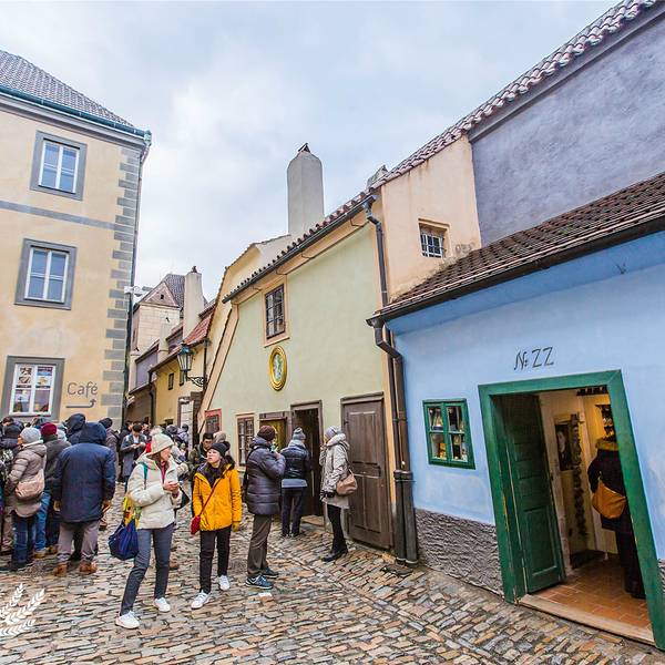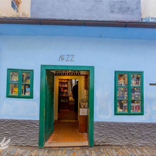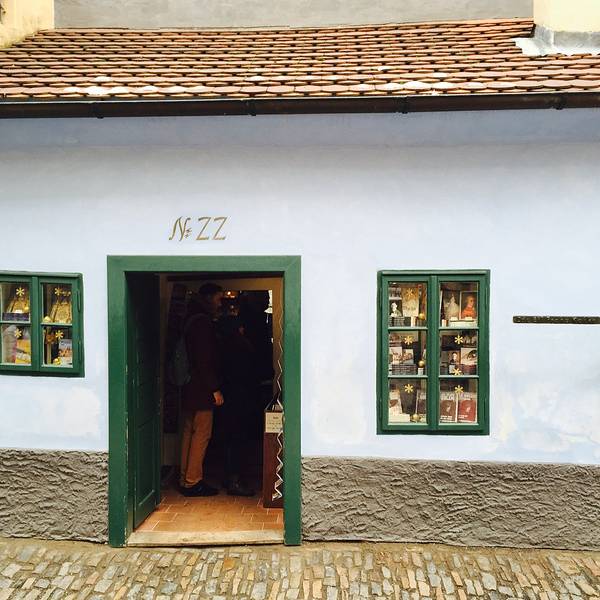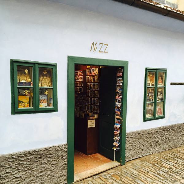 黄金巷之所以会引起如此名声,还是名作家卡夫卡曾居住于此的缘故,1916年时捷克著名的文学家、当时还只是一位银行小职员的卡夫卡,喜欢这里的环境,以每月20克朗租了这里门牌为22号的房子作为工作室,并在此默默完成了当时不为人知的作品《乡村医生》和《致科学院的报告》;而门牌12号住的则是历史小说家玛兰纳。卡夫卡曾居住过的22号,如今是一家小巧可爱的书店。