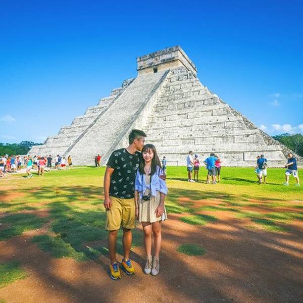 再往前走几步,金字塔就出现在了眼前! 曾经金字塔是可以攀登的,可某天一位游客失足摔下,然后不治身亡,然后就没有然后了。想爬金字塔的朋友们,请移步去另一处遗址——Coba,看好了,不是Cuba。
