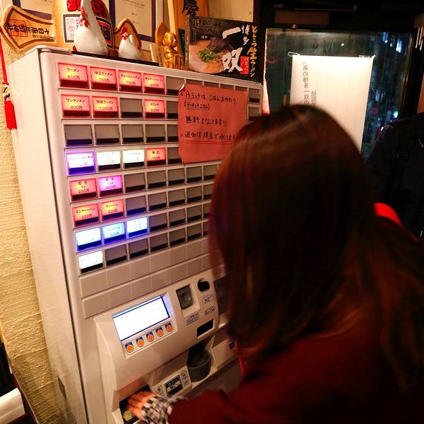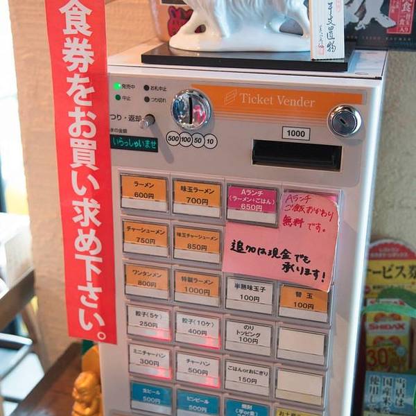 没有图片,完全看不懂的自动拉面售货机,店里的小哥都不懂英语的。幸好有个台湾同胞帮我们解释。一双的店,就这么大。牌子上的替玉是加面的意思。我们不知道随便点了两份面和一份5个的饺子,2000門,后来再次跟一...