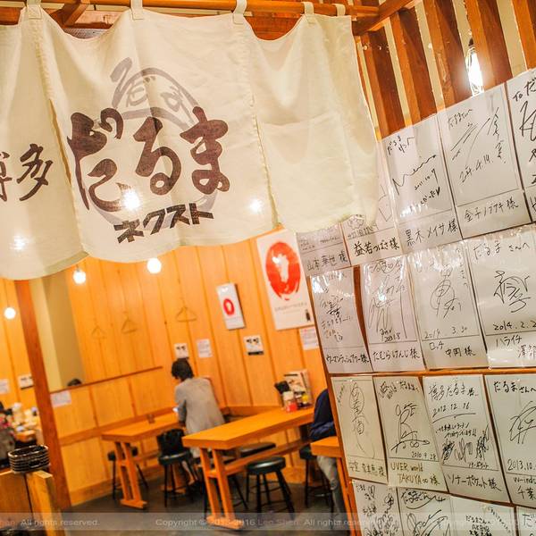 因为没有前往常规的购物点,选择了自由活动,所以歪打误撞的走进福冈当地博罗拉面非常出名的一家店,门口挂满了各个层面明星的签名。