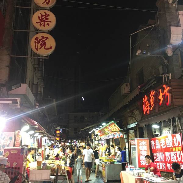 瞎走中 感觉到吃饭时间了,于是查美食攻略,发现劈柴院很近,于是坐公交前往 下公交的时候我们俩都: 诶等等这里是不是很眼熟,这不是早上吃早餐的那条街然后发现逛一圈回到酒店附近了,劈柴院就在这附近 迷迷糊糊二人组劈柴院吃了点小吃,又想着晚上要去吃海鲜,惯例掏出手机查没错 我们真的都是临时查临时去导致劈柴院在酒店边上我们都不知道开始遛食瞎逛,感觉我们要用脚来走遍青岛最后晚餐决定去台东夜市,中间我们还去了一个什么街我都不记得了都是瞎走瞎逛瞎逛的好处是走了很多自己记不得 又不出名的小路