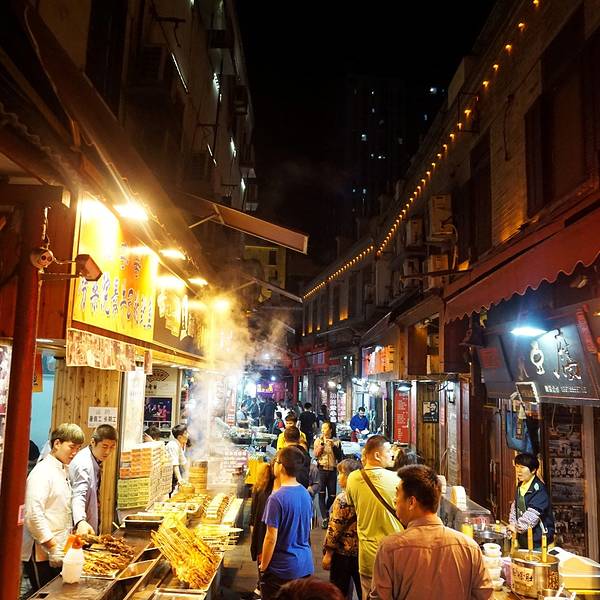 慕名来到有名的小吃街——劈柴院。 劈柴院离我们住的酒店比较近,步行也就5分钟这样子,所以晚餐的问题就直接在这里解决了。 路是老路,房子是老房子,但这丝毫不影响吃客的热情。 那真叫一个人挤人,在吃鱿鱼串...