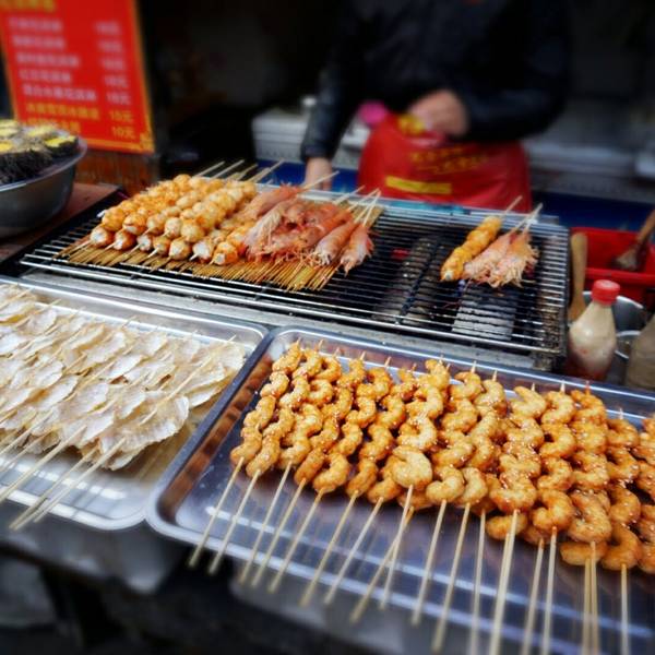 - 慕名来到有名的小吃街——劈柴院。另外还有海胆、肉串、海星……各种各样的小吃,诸位感兴趣的话可以品尝