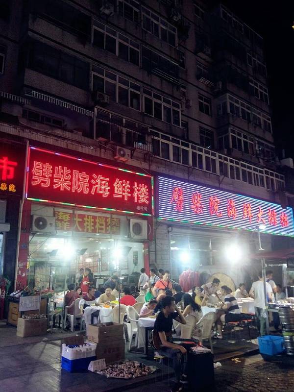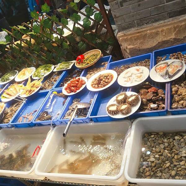 我们走到劈柴院的那端,是一个看似规模很大的海鲜大排挡,那里坐满客人,感觉比较靠谱后,就开始点菜。