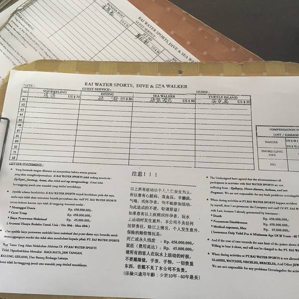 潜水是75美金/ 人潜水照相是另外收费的 潜水光碟35美金。这里潜水的价格偏贵,不推荐。巴厘岛的飞伞是从沙滩起飞的,这个也算是特...这个是飞鱼,比香蕉船刺激。深潜归来的人们带着满满的希望与收获归来的潜水人。