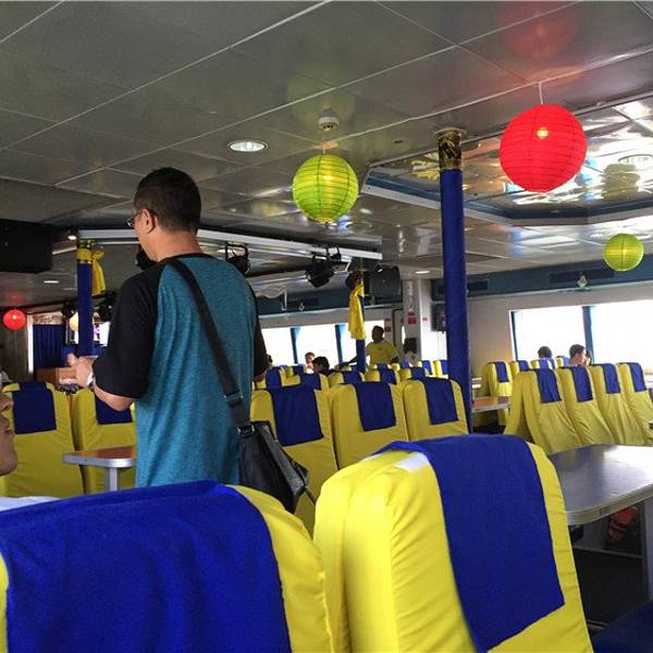 一大早,我们就来到了南湾水上中心的码头,等待我们的是一艏黄色的喷射邮轮。,看上去还是挺不错的! 展开