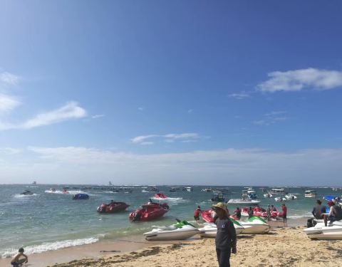 ...,不过很多水上运动都集中在这里,人特别多,而且除非是很喜欢快艇这里项目,不然真的觉得又贵又无聊这里的景色不错,沙滩的沙子够细够软,不过很多水上运动都集中在这里,人特别多,而且除非是很喜欢快艇这里项目,不然真的觉得又贵又无聊